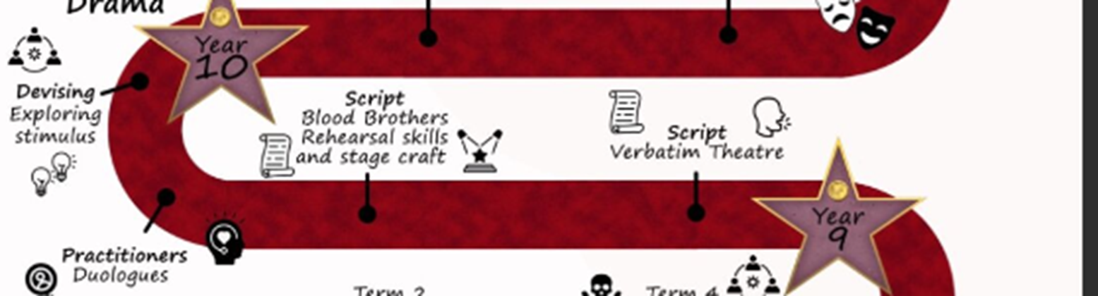 In Year 9, students undertaking the Drama pathway will engage with a curriculum designed to prepare them for the requirements of GCSE Drama. They will explore a variety of theatrical styles and forms, including Verbatim Theatre, while studying set texts such as Blood Brothers and other selected plays to develop skills in script analysis, interpretation, and performance. Devising will form a central part of the curriculum, with students creating original work in response to a range of stimuli to strengthen creativity, collaboration, and problem-solving skills. In addition, students will develop performance skills through the study and staging of duologues, focusing on vocal and physical characterisation as well as interpretative choices. Learning will be structured through mini-components that reflect the assessment style of GCSE Drama, enabling students to gain early experience in both practical performance and evaluative reflection. This ensures they are equipped with the core knowledge and skills necessary for success at Key Stage 4.